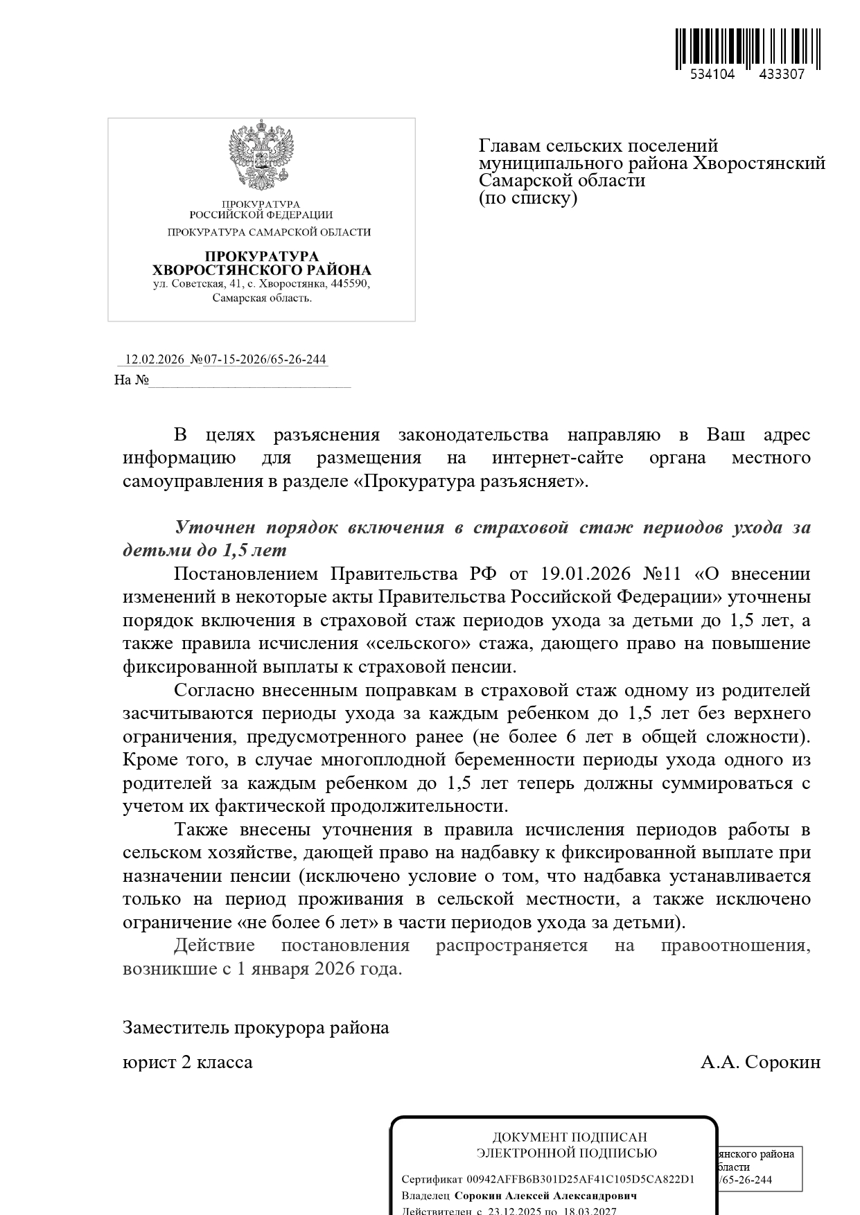 Помощник прокурора Хворостянского района Зиновьева В.О. разъясняет |