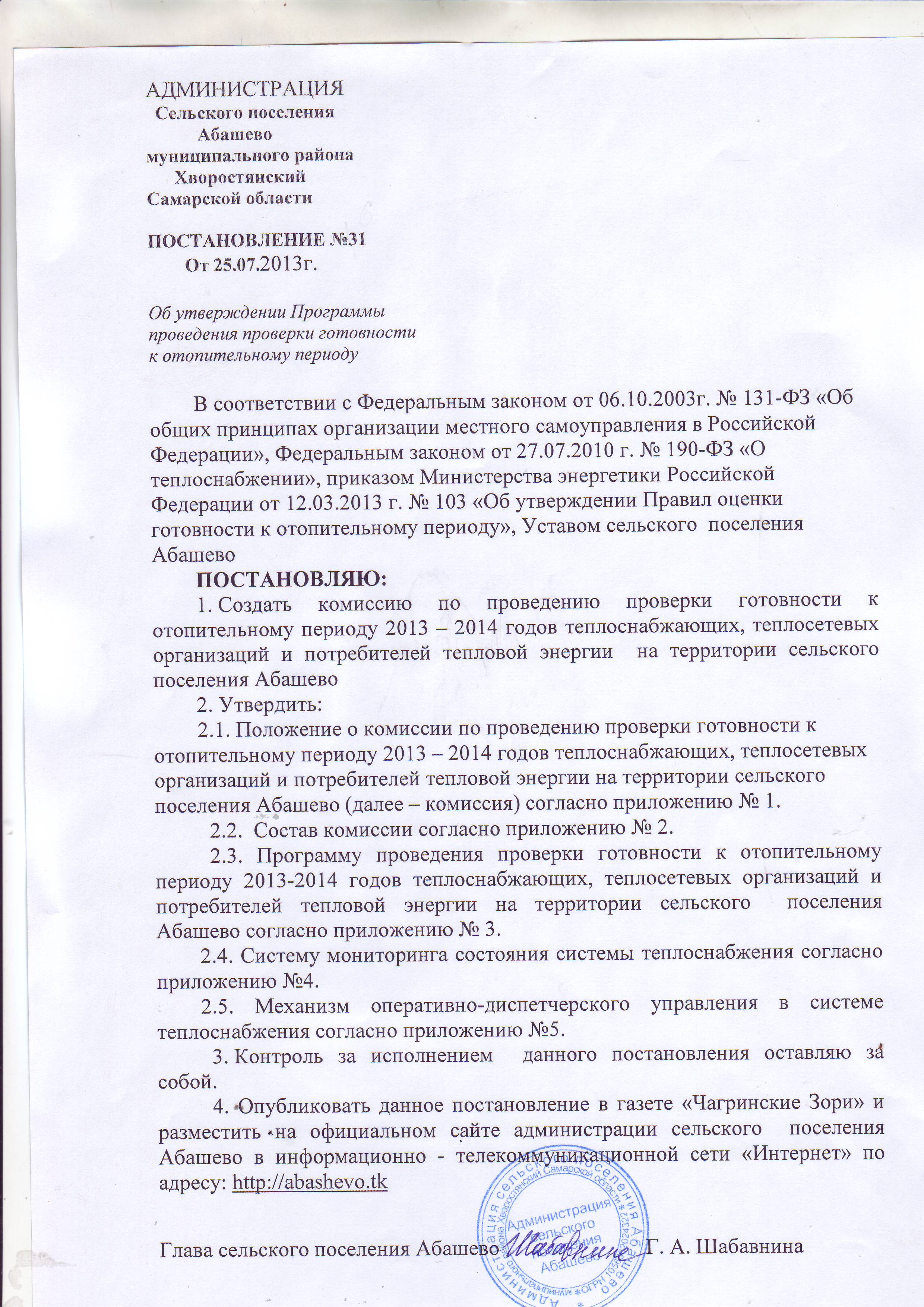 утверждения схемы теплоснабжения сельского поселения Абашево |